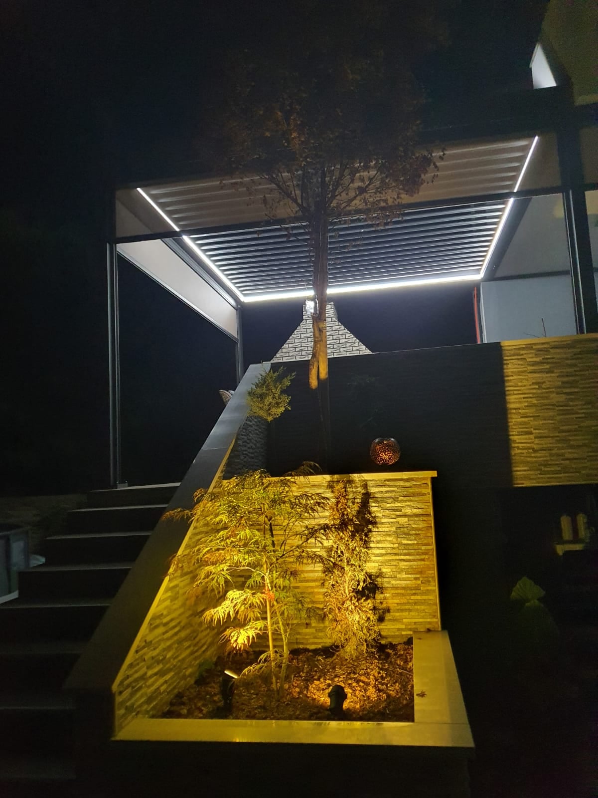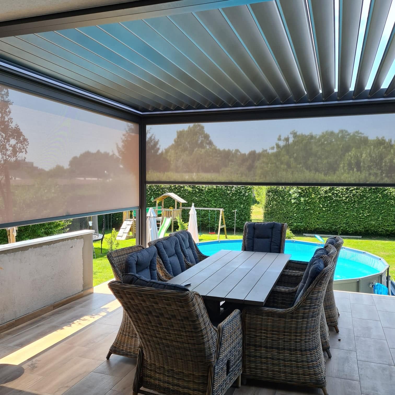 Bioklimatska pergola u antracit izvedbi, integrirana LED rasvjeta i bočna rolo sjenila. Dašak hedonizma uz TT Gradnja tim!